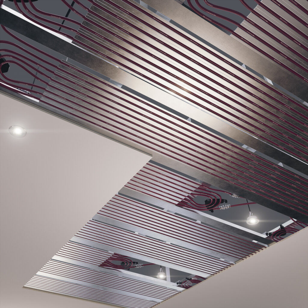 Die Kühl-/Heizdecke lässt sich vielseitig im Nicht-Wohnbau, Wohnbau und bei Light-Commercials einsetzen und arbeitet – anders als Klimaanlagen – nahezu geräuschlos. Sie ist für akustische und nichtakustische Gipskarton-Deckenflächen geeignet. Durch frei planbare Gipskartondecken wird eine architektonisch ansprechende Deckengestaltung ermöglicht. Mit den bewährten REHAU Einzelraumregelungen NEA und NEA SMART 2.0 lässt sich die Raumtemperatur zuverlässig regeln.